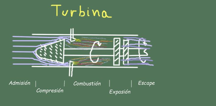 - Admisión. Consiste en la entrada de aire a temperatura y presión ambiental por la entrada de la turbina.