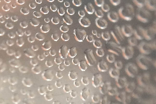 - Condensación. Es el paso de un gas al estado líquido, lo cual ocurre sobre una superficie debido a la disminución de la temperatura. Al bajar la temperatura, las moléculas de agua disminuyen su energía cinética y se unen más entre sí para condensarse. Este proceso requiere que existan partículas a las cuales el agua se adhiera y la temperatura de dichas partículas debe ser menor que la temperatura de saturación del agua. En estas condiciones se alcanza el punto de rocío o temperatura de rocío, es decir la temperatura a la que el agua se condensa.