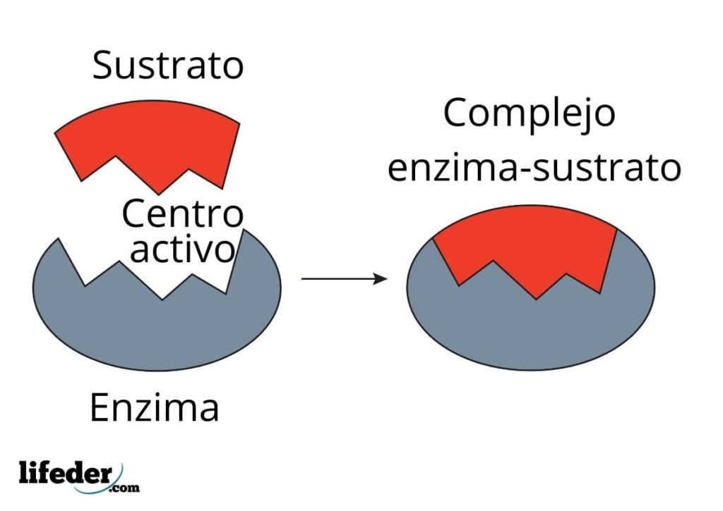 La enzima interacciona con el sustrato a través de una región especializada de su cadena proteica, la cual recibe el nombre de centro activo, cuya estructura tridimensional se acopla a la estructura del sustrato. La interacción entre el centro activo y el sustrato suele ser débil y no covalente.