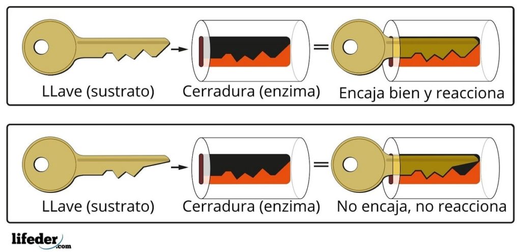 Así por ejemplo, el centro activo de la hexoquinasa, el cual es dinámico por las vibraciones moleculares de las cadenas proteicas, ofrece los grupos en las orientaciones espaciales exactas para que las moléculas de adenosín trifosfato, y xilosa, calcen como si fueran piezas rellenando huecos geométricos.