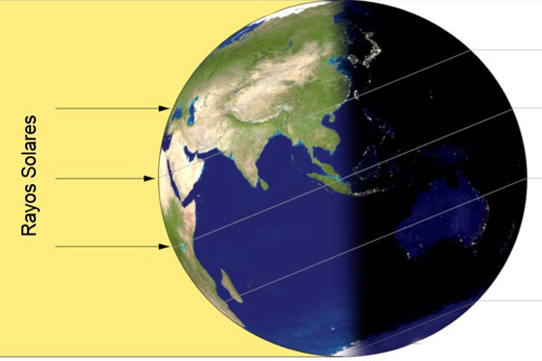 Se conforma una franja de 204.000 Km conocida como zona intertropical, por cuyo centro pasa la línea ecuatorial. Esta línea o ecuador terrestre, divide al planeta en dos hemisferios, el norte y el sur.