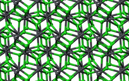 Nótese que cada esfera grisácea está rodeada de cuatro esferas verdes. Estas moléculas de PbCl4 “apretujadas” componen un cristal inestable y susceptible de descomponerse vigorosamente.