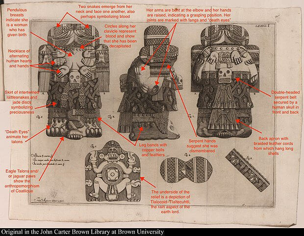 - Universidad Francisco Marroquín. Civilización azteca, efigie de Coatlicue. Piedra, s. XV. Obtenido de educacion.ufm.edu
