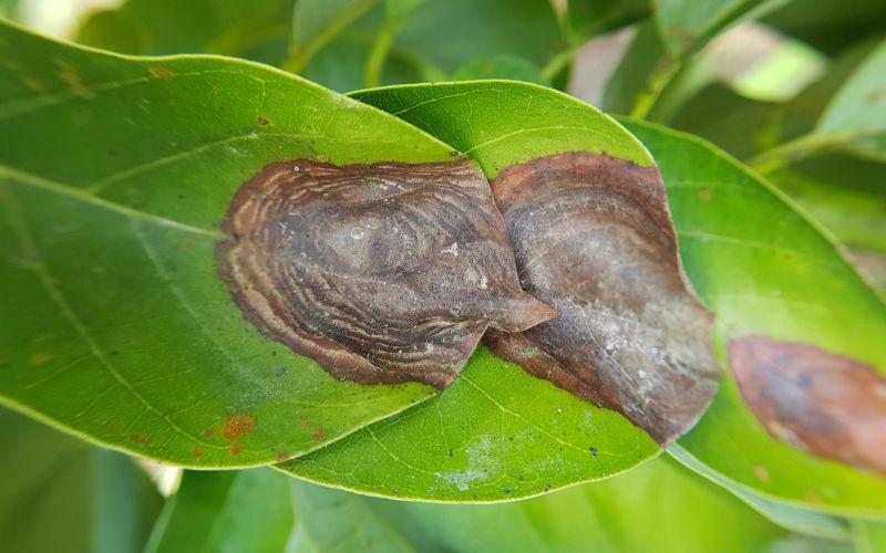 • Fase necrotrófica. En esta fase, el hongo secreta enzimas líticas para degradar los componentes de la planta o toxinas para matar sus tejidos. El patógeno completa su ciclo de vida sobre este tejido muerto. Algunas especies de hongos solo presentan este estilo de vida, pero en otras especies, como C. gloeosporioides, constituye una fase de su ciclo vital.