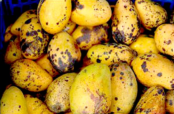 Antracnosis causada por Colletotrichum gloeosporioides en mangos. Fuente: Knowledge Center CC BY-SA 3.0, Wikimedia Commons