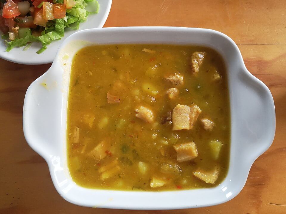 Es una sopa espesa muy sazonada y de un sabor muy característico, por la mezcla de ingredientes que tiene este popular plato.