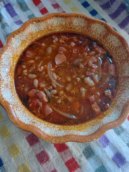 Receta surgida de la combinación de los frijoles con el chorizo de puerco, queso amarillo y los jalapeños. Algunos le añaden también aceitunas.