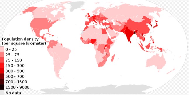 A continuación el cálculo de la densidad de población de diversos países con diferentes extensiones territoriales y condiciones climáticas: