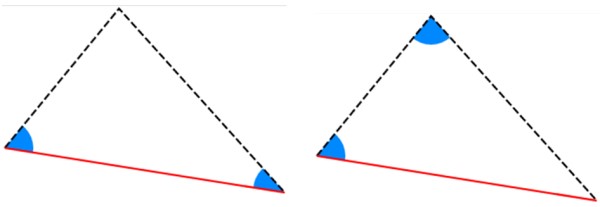–Criterios ALA y AAL: los triángulos tienen dos ángulos internos iguales y el lado entre dichos ángulos tiene la misma medida.