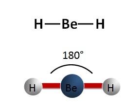 Mientras que en la molécula del BeH2 (hidruro de berilio, imagen inferior), molécula lineal, no se presenta ninguna polarización, puesto que el centro de distribución de cargas positivas (hidrógenos) se encuentra en el centro de distribución de cargas negativas (berilio), anulando cualquier polarización que pueda existir. Esta es una molécula no polar.