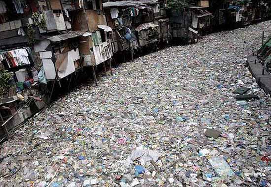 Ubicado en Java occidental (Indonesia), está totalmente cubierto de desechos sólidos, especialmente plástico. Se calcula que cientos de toneladas de basura entran diariamente al río y la mayoría de ella termina en el mar.