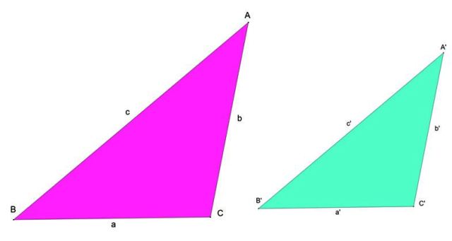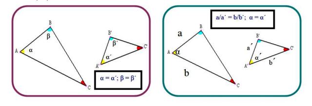 Además, los correspondientes ángulos internos tienen que ser de la misma medida, por lo tanto: ∠A =∠A´; ∠B =∠B´ y ∠C =∠C´. Según estas condiciones, los criterios de semejanza de triángulos son: