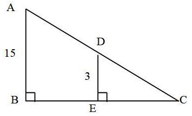 Los triángulos son semejantes, pues comparten un ángulo que es ∠C y los lados DE y AB son paralelos. La razón de semejanza se calcula mediante: