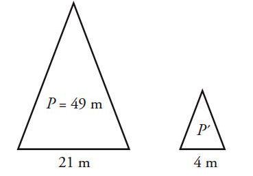 Un triángulo isósceles tiene un perímetro de 49 cm y una base de 21 cm. Calcular el perímetro de un triángulo semejante a este, pero cuya base mida 4 cm.