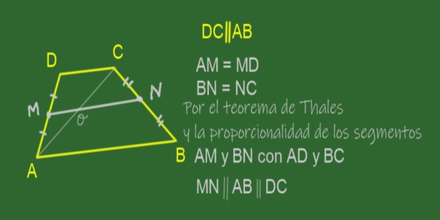 Es decir, AM es proporcional a BN en la misma proporción que AD es a BC, por lo que se dan las condiciones para la aplicación del teorema (recíproco) de Tales, que afirma lo siguiente: