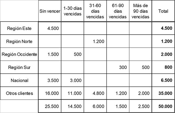 Clasifica las cuentas por cobrar en diferentes grupos de vencimiento. De acuerdo con este método, cuanto más largo sea el período por el cual una cuenta por cobrar permanece pendiente, menores serán las posibilidades de su cobro.