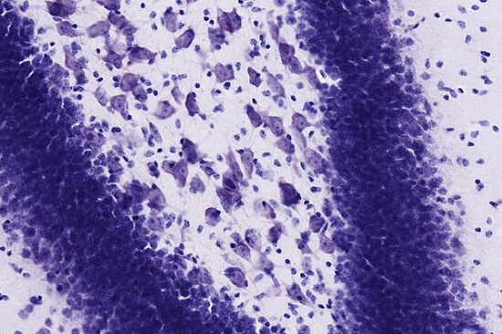 Imagen de una sección histológica con tinción de Nissl del hipocampo de un roedor mostrando diferentes tipos de neuronas (neuronas y glía). Fuente: Universidad de California Davis V, National Institutes of Health, part of the United States Department of Health and Human Services.
