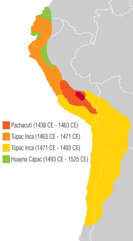 El imperio Tawantinsuyo alcanzaría su máxima extensión, unos 3.000.000 de kilómetros cuadrados, a mediados del siglo XV, y menos de cien años después llegaría a su fin con la aparición de Francisco Pîzarro, y la ejecución del inca Atahualpa en 1533.