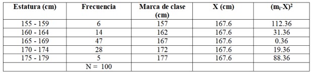 La varianza y la desviación estándar son medidas de dispersión. Si denotamos la varianza con s2 y a la desviación estándar, que es la raíz cuadrada de la varianza como s, para datos agrupados tendremos respectivamente: