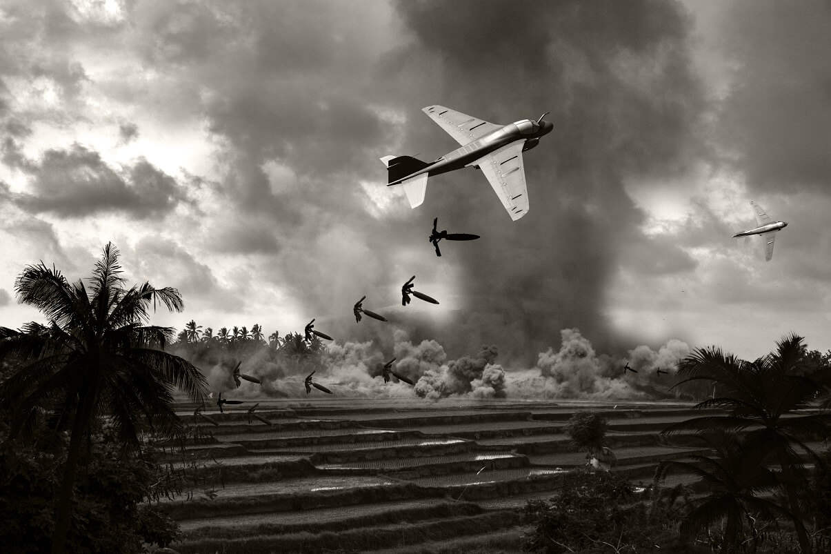 Las incursiones armadas, los bombardeos y el uso de armas de destrucción masiva (como las armas químicas y nucleares) son algunos de los peores desastres artificiales relacionados con las guerras.