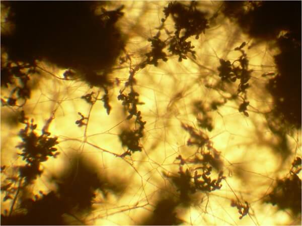 Estas esporas son producidas en estructuras denominadas conidióforos. Los conidióforos pueden ser simples o ramificados. Pueden crecer solitarios o en grupos formando fructificaciones esféricas.