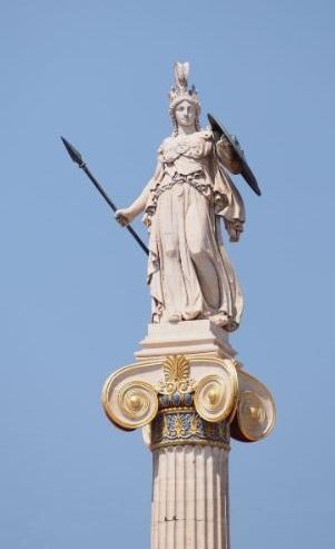 Palas Atenea era la diosa virginal de la sabiduría, la inteligencia, la civilización, la ley y la justicia, la guerra, las ciencias, las artes y los oficios. Es conocida específicamente por su habilidad estratégica en la guerra y es a menudo retratada como compañera de héroes, siendo también la patrona del esfuerzo heroico.