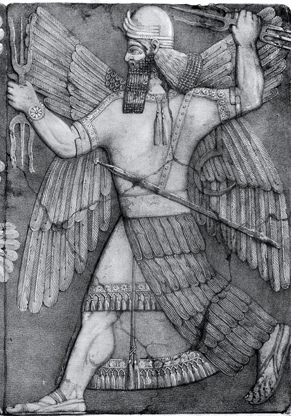 Ninurta, también conocido como Ningirsu, fue una deidad guerrera. Reconocido como héroe de los dioses luego de su lucha contra el pájaro Anzû, después de que este robara la tabla del destino a su padre Enlil.