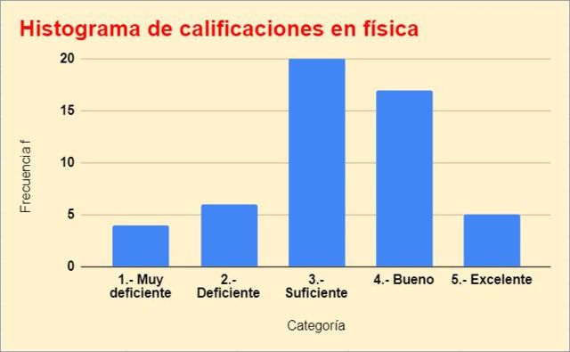 Para hacer la tabla de frecuencias se procede a ordenar los datos de menor a mayor y se cuenta cuantos datos corresponden a cada categoría, la cual será la calificación que obtendrá el estudiante en la asignatura de física:
