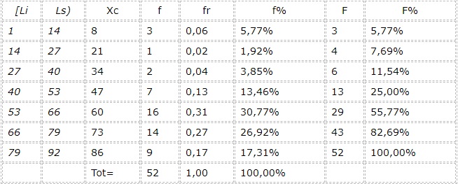 5.- Los intervalos son: [1,14), [14, 27), [27, 40), [40, 53), [53, 66), [66, 79), [79, 92).