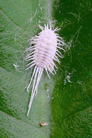 El Pseudococcus spp. (cochinilla algodonosa) emana una secreción que le sirve de protección contra los depredadores. Mide entre 2-5 mm; el cuerpo está cubierto por una secreción pulverulenta blanca y posee filamentos laterales visibles a simple vista.