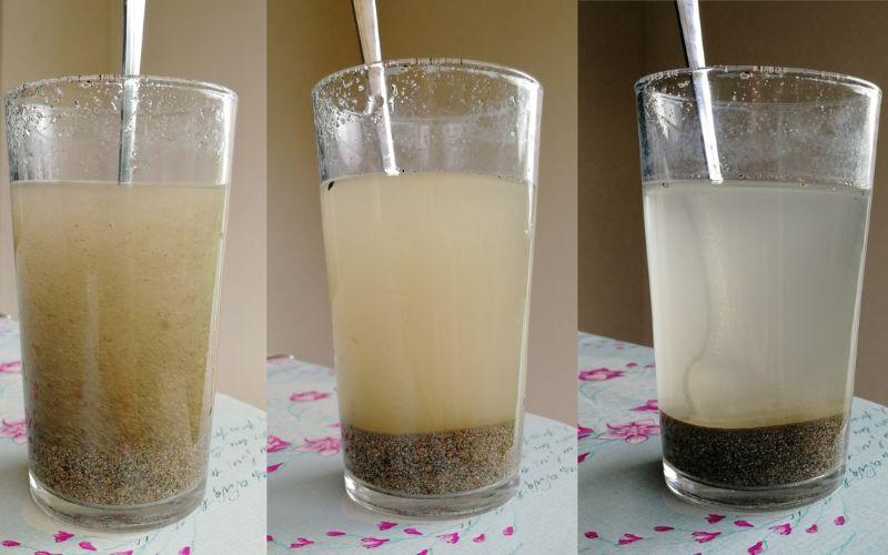 - Preparación de jugos. Cuando se preparan jugos derivados de frutas ricas en fibra, es común ver que el material sólido desciende al fondo del contenedor, mientras que el líquido queda suspendido en la parte superior.