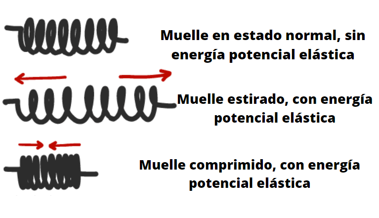 Los resortes son un ejemplo clásico de la energía potencial elástica, puesto que al ser estirados absorben energía potencial que se libera cuando se contraen.