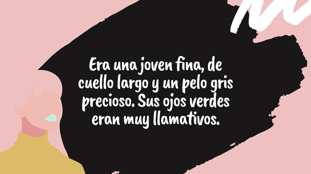 – “Carmen parecía tener quince años aunque hubiese cumplido treinta. Su cara llena de pecas y su pequeña cabeza le daban un aspecto aniñado que pareciese que nunca lo iba a perder. Su pelo era castaño, pero se volvía claro, muy claro, cuando llegaba el verano. No era muy alta, tampoco muy baja, tenía la estatura perfecta para enamorar a cualquier chico de la ciudad, tanto adolescentes como adultos”.