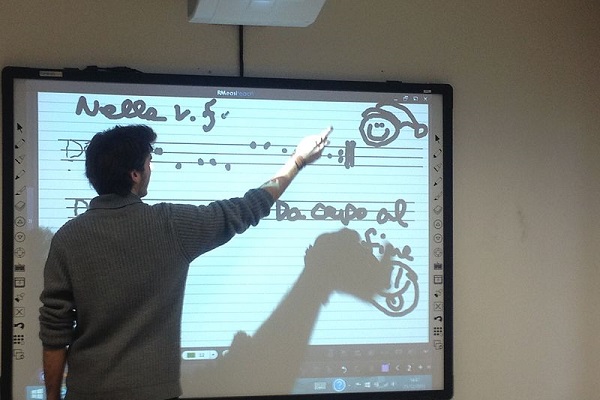 La pizarra digital interactiva es una herramienta constituida por un ordenador, un proyector y una pantalla que permite ser controlada por un puntero. Existen diferentes tipos de pizarra, la más utilizada es la de la imagen, está surgiendo otra, la pizarra digital interactiva táctil. Se diferencia de la anterior en que permite controlar la pantalla con los dedos.