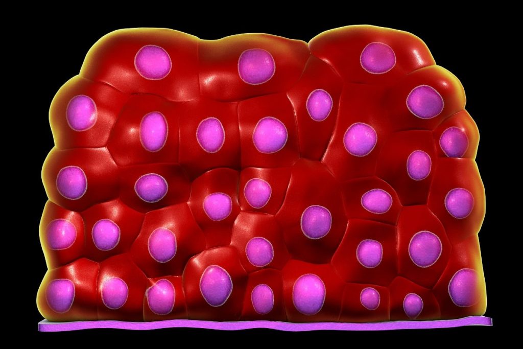 El epitelio de transición, conocido como urotelio o uroepitelio, es el conjunto de células epiteliales que cubren la superficie interna de los conductos urinarios: de los cálices renales a la uretra. Antes se creía que era “de transición” porque permitía el paso paulatino del recubrimiento de la vía urinaria de un epitelio plano estratificado a uno cilíndrico simple.