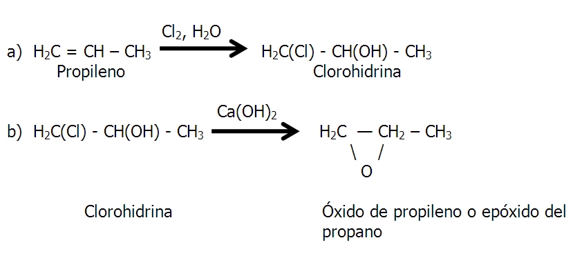 Este método se realiza en dos etapas: a) Formación de la clorohidrina, y b) Tratamiento de la clorohidrina con una base para eliminar el ácido clorhídrico.