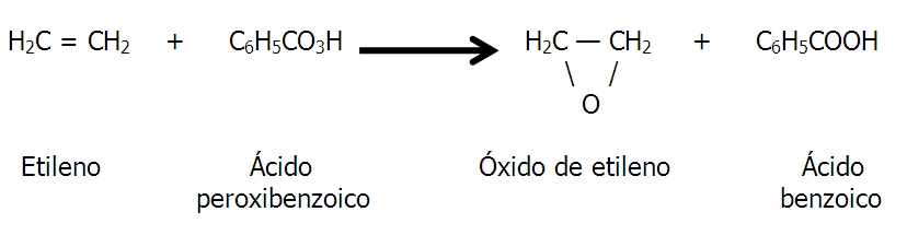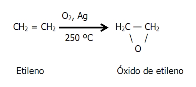 Peroxidación del etileno para formar óxido de etileno o epóxido de etano. Fuente: Gabriel Bolívar.