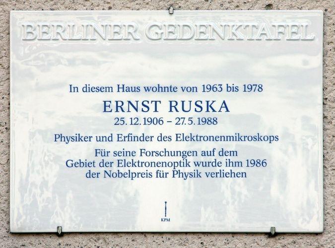 Ernst Ruska (1906-1988) fue un destacado físico alemán que obtuvo en 1986 el premio Nobel de física, debido al trabajo realizado en el área de la óptica electrónica, así como por el diseño del primer microscopio electrónico. Sus estudios sobre los lentes electrónicos con distancias focales cortas fueron un factor determinante y clave en la innovación e invención posterior del microscopio electrónico.