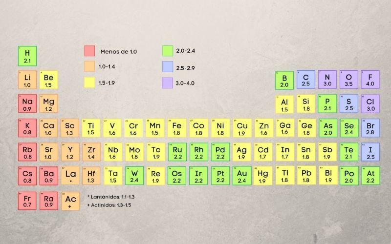 Ejemplo de electronegatividad (en la escala de Pauling)