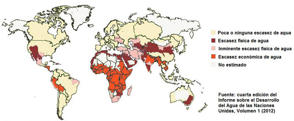 La escasez de agua en el mundo es un problema creciente debido a la disminución del recurso y al aumento de la demanda al crecer la población.