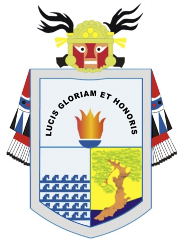 El escudo se divide en tres campos. En el superior hay una llama votiva y la inscripción: Lucis gloriam et honoris (Luz de gloria y honor).