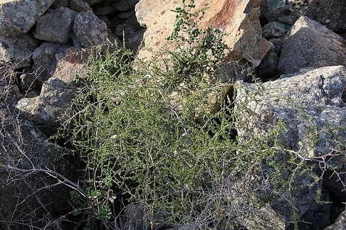 – Apariencia. Arbusto o subarbusto perenne, de carácter ginodioico, que mide de 1,50 a 3 m. Se caracteriza por un rizoma muy pequeño, grueso y carnoso del que se desarrollan múltiples tallos plurianuales que constituyen la parte aprovechable de la planta.