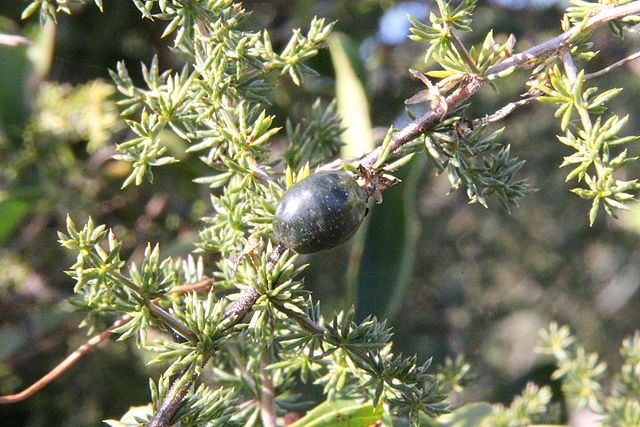 – Frutos. Baya globular de 5-8 mm de diámetro, verde cuando tierno y azul-negruzco cuando maduro. En su interior se forman 1-3 semillas semiesféricas. Por lo general, la polinización es entomófaga y la floración se produce de mayo a septiembre.