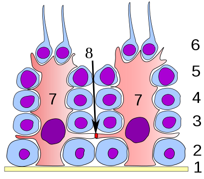 – un compartimiento basal, donde las células mitóticas están expuestas al medio extratubular y
