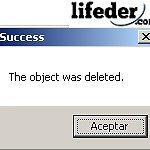 Una vez hayas seguido estos pasos, saldrá un dialogo con el mensaje: “The object was deleted.” (en español, “El objeto ha sido eliminado”). Haz clic en “Aceptar”; en este punto la carpeta fue eliminada.