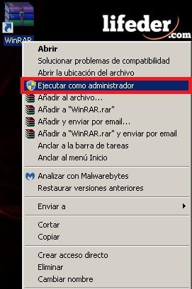 Abre la herramienta WinRAR, haz clic derecho y selecciona la opción “Ejecutar como administrador”.