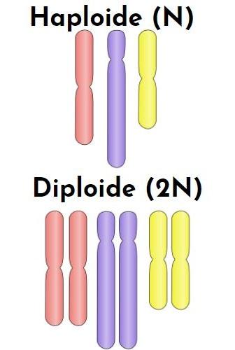 Los organismos haploides poseen en la mayor parte de su ciclo vital un solo conjunto de cromosomas. Los organismos diploides, en cambio, contienen un par de conjuntos completos de cromosomas (cromosomas homólogos) en casi todo su ciclo de vida. En este último caso, cada conjunto de cromosomas suele obtenerse a través de cada progenitor.