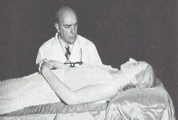 Cadáver embalsamado de Eva Duarte con el doctor Pedro Ara