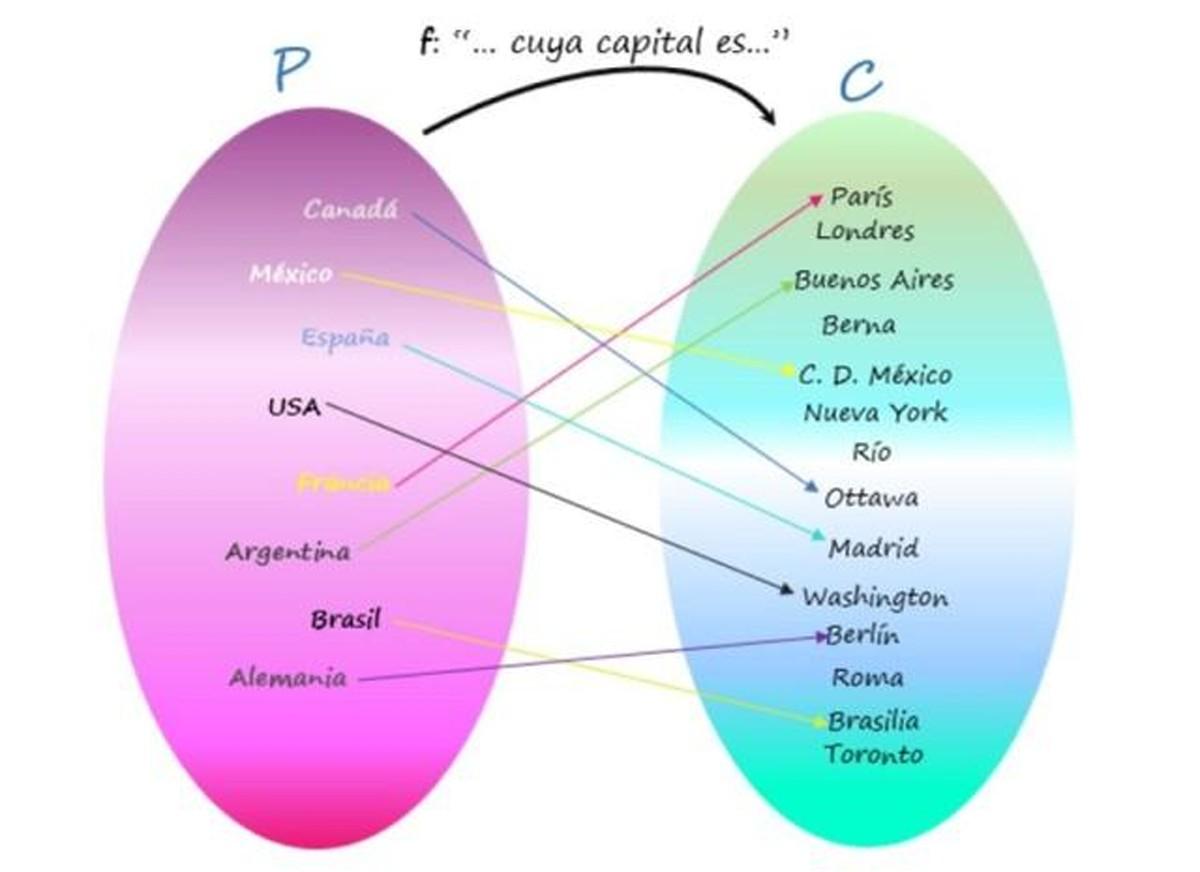 En el diagrama de la función “… es capital de…”, representado arriba, al evaluar dicha función en el elemento “Canadá”, resulta el elemento “Ottawa”, en caso de hacerlo con “México”, resulta “Ciudad de México” y así sucesivamente.