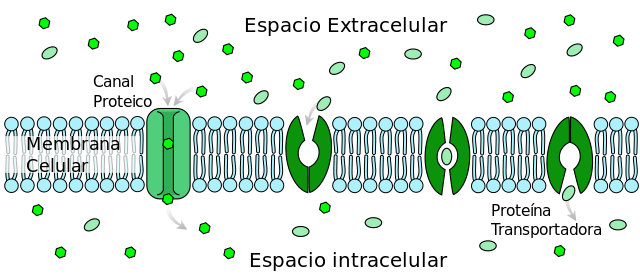 Puede hablarse de difusión simple cuando cualquier lugar de la membrana celular sirve para que la sustancia pase libremente por ella. Cuando se requiere la participación de una proteína en el proceso para diluir la sustancia, se habla de una difusión facilitada.